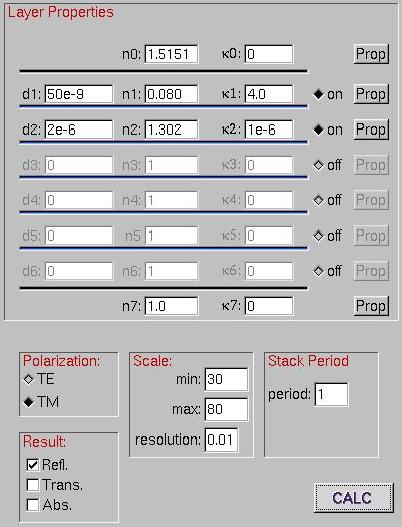 Here we choose a very special kind of teflon, namely Teflon AF 1600 with n2 = 1.302 and k2= 1e-6.
