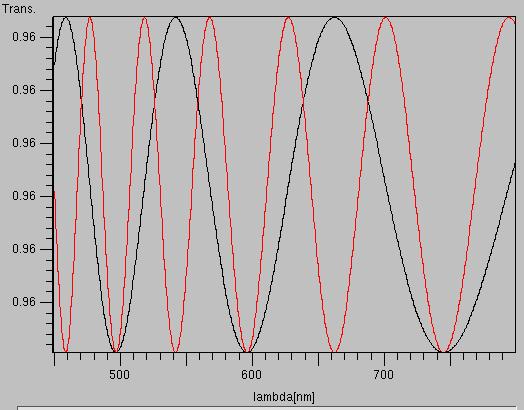 the moment.You see clearly the modulation representing the film optical thickness.The red curve is