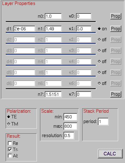 calculated for d1=1um. Note that you see the transmission in this example (set the check box to